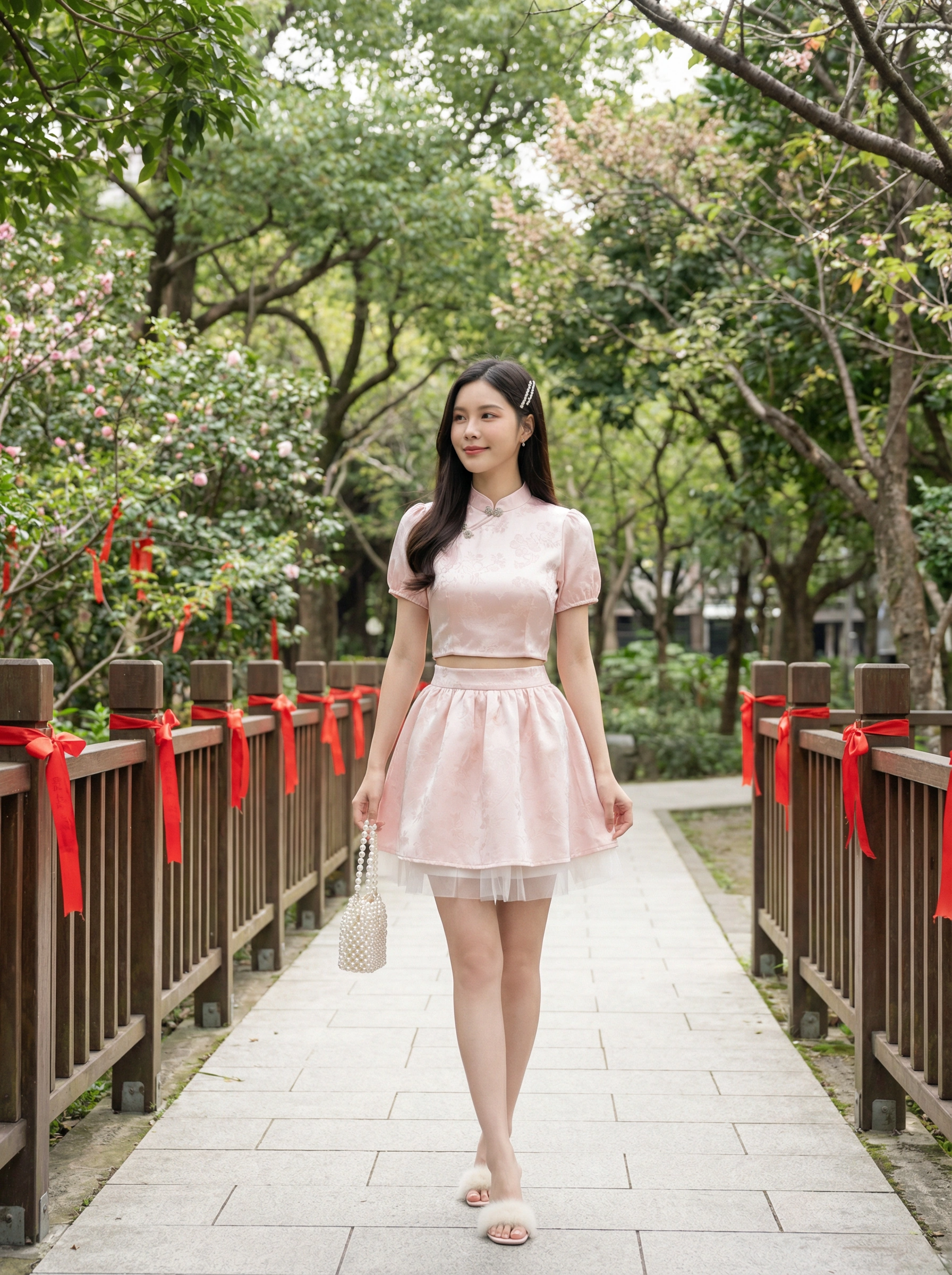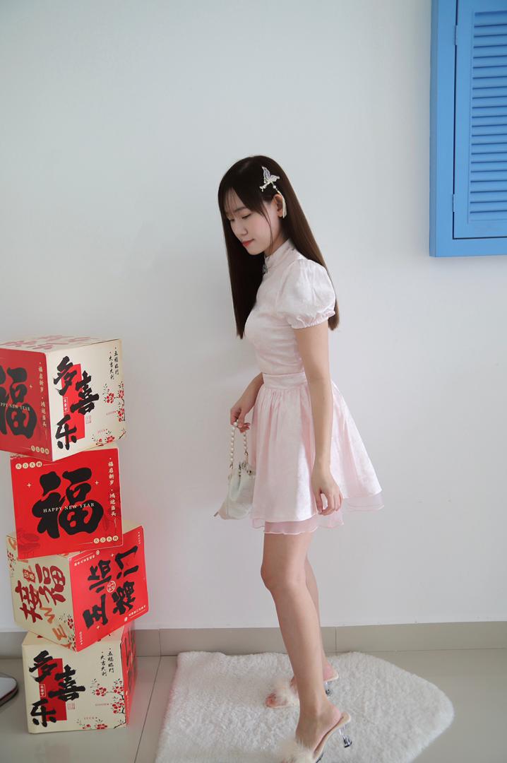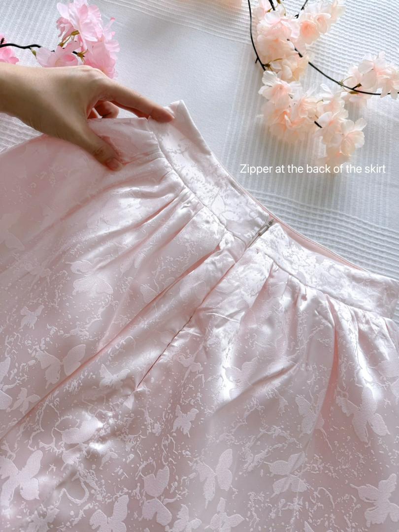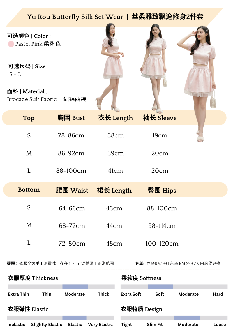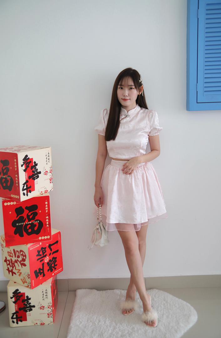 𝘈 𝘮𝘰𝘥𝘦𝘳𝘯 𝘵𝘸𝘰-𝘱𝘪𝘦𝘤𝘦 𝘳𝘦𝘪𝘯𝘵𝘦𝘳𝘱𝘳𝘦𝘵𝘢𝘵𝘪𝘰𝘯 𝘰𝘧 𝘵𝘩𝘦 𝘤𝘭𝘢𝘴𝘴𝘪𝘤 𝘤𝘩𝘦𝘰𝘯𝘨𝘴𝘢𝘮, 𝘵𝘩𝘦 𝘠𝘶 𝘙𝘰𝘶 𝘉𝘶𝘵𝘵𝘦𝘳𝘧𝘭𝘺 𝘚𝘪𝘭𝘬 𝘚𝘦𝘵 𝘧𝘦𝘢𝘵𝘶𝘳𝘦𝘴 𝘢 𝘮𝘢𝘯𝘥𝘢𝘳𝘪𝘯-𝘤𝘰𝘭𝘭𝘢𝘳 𝘤𝘳𝘰𝘱 𝘵𝘰𝘱 𝘱𝘢𝘪𝘳𝘦𝘥 𝘸𝘪𝘵𝘩 𝘢 𝘩𝘪𝘨𝘩-𝘸𝘢𝘪𝘴𝘵𝘦𝘥 𝘧𝘭𝘢𝘳𝘦𝘥 𝘴𝘬𝘪𝘳𝘵, 𝘧𝘪𝘯𝘪𝘴𝘩𝘦𝘥 𝘸𝘪𝘵𝘩 𝘢 𝘥𝘳𝘦𝘢𝘮𝘺 𝘵𝘶𝘭𝘭𝘦 𝘩𝘦𝘮. 𝘊𝘳𝘢𝘧𝘵𝘦𝘥 𝘧𝘳𝘰𝘮 𝘴𝘰𝘧𝘵 𝘭𝘪𝘨𝘩𝘵-𝘱𝘪𝘯𝘬 𝘴𝘪𝘭𝘬 𝘴𝘢𝘵𝘪𝘯✨, 𝘪𝘵 𝘪𝘴 𝘢𝘥𝘰𝘳𝘯𝘦𝘥 𝘸𝘪𝘵𝘩 𝘢 𝘥𝘦𝘭𝘪𝘤𝘢𝘵𝘦 𝘣𝘶𝘵𝘵𝘦𝘳𝘧𝘭𝘺 𝘫𝘢𝘤𝘲𝘶𝘢𝘳𝘥 𝘱𝘢𝘵𝘵𝘦𝘳𝘯 𝘢𝘯𝘥 𝘦𝘭𝘦𝘨𝘢𝘯𝘵 𝘫𝘦𝘸𝘦𝘭-𝘦𝘯𝘤𝘳𝘶𝘴𝘵𝘦𝘥 𝘧𝘳𝘰𝘨 𝘣𝘶𝘵𝘵𝘰𝘯𝘴.💕