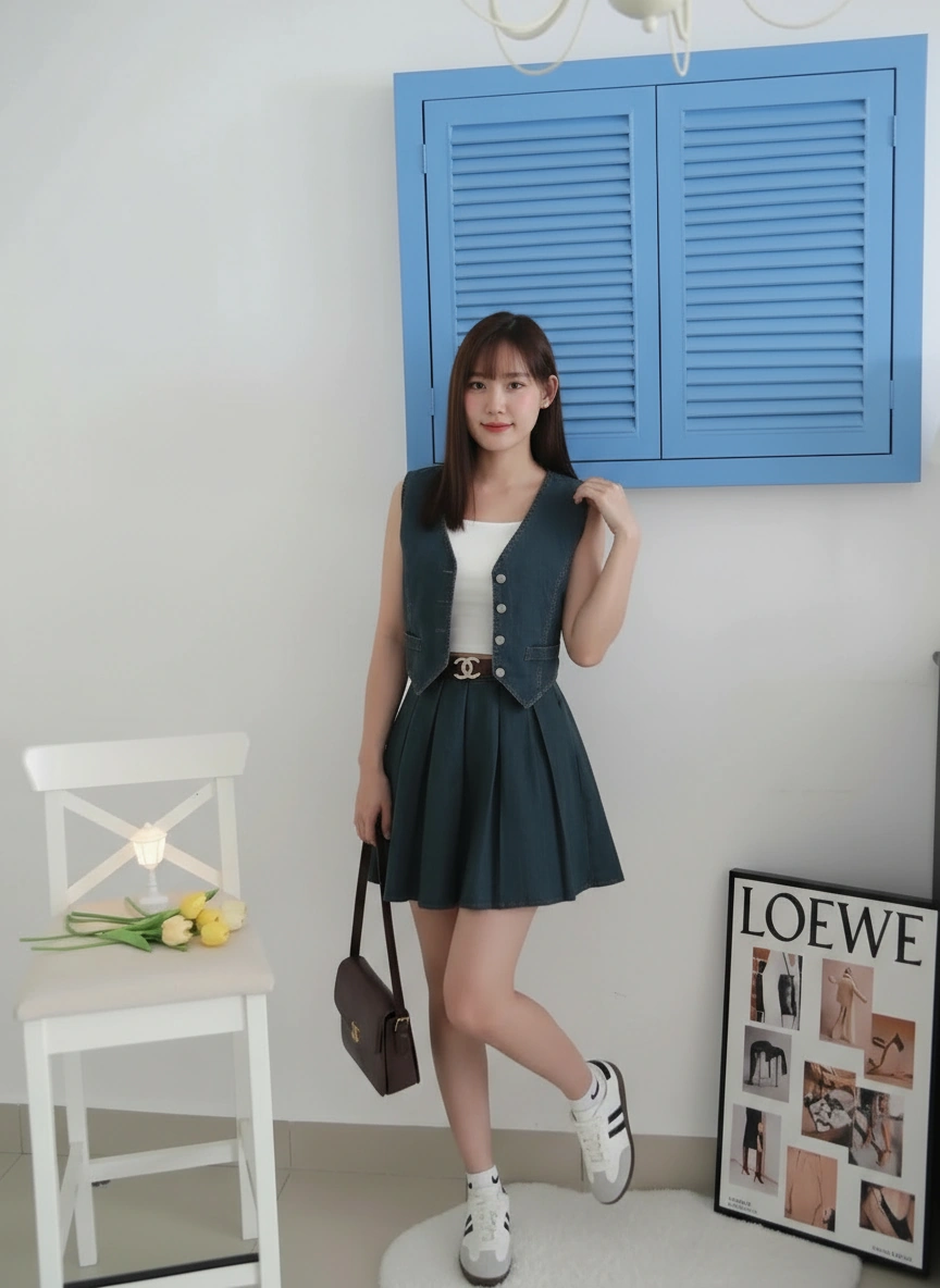 𝘛𝘩𝘪𝘴 𝘯𝘦𝘸 𝘥𝘦𝘯𝘪𝘮 𝘒𝘰𝘳𝘦𝘢𝘯 𝘷𝘦𝘴𝘵 𝘴𝘦𝘵 𝘰𝘧𝘧𝘦𝘳𝘴 𝘢 𝘷𝘪𝘯𝘵𝘢𝘨𝘦 𝘴𝘵𝘺𝘭𝘦 𝘸𝘪𝘵𝘩 𝘢 𝘶𝘯𝘪𝘲𝘶𝘦 𝘤𝘰𝘭𝘰𝘳. 𝘐𝘵’𝘴 𝘮𝘢𝘥𝘦 𝘧𝘳𝘰𝘮 𝘩𝘪𝘨𝘩-𝘲𝘶𝘢𝘭𝘪𝘵𝘺, 𝘴𝘵𝘳𝘦𝘵𝘤𝘩𝘢𝘣𝘭𝘦 𝘥𝘦𝘯𝘪𝘮 𝘧𝘢𝘣𝘳𝘪𝘤✨. 𝘛𝘩𝘦 𝘷𝘦𝘴𝘵 𝘤𝘢𝘯 𝘣𝘦 𝘸𝘰𝘳𝘯 𝘰𝘷𝘦𝘳 𝘢 𝘵𝘢𝘯𝘬 𝘵𝘰𝘱 𝘢𝘴 𝘰𝘶𝘵𝘦𝘳𝘸𝘦𝘢𝘳 𝘰𝘳 𝘣𝘶𝘵𝘵𝘰𝘯𝘦𝘥 𝘶𝘱 𝘢𝘯𝘥 𝘸𝘰𝘳𝘯 𝘢𝘴 𝘢 𝘵𝘰𝘱. 𝘐𝘵 𝘤𝘰𝘮𝘦𝘴 𝘸𝘪𝘵𝘩 𝘢 𝘤𝘰𝘮𝘱𝘭𝘪𝘮𝘦𝘯𝘵𝘢𝘳𝘺 𝘷𝘪𝘯𝘵𝘢𝘨𝘦-𝘴𝘵𝘺𝘭𝘦 👜 𝘣𝘳𝘰𝘸𝘯 𝘊𝘩𝘢𝘯𝘦𝘭-𝘪𝘯𝘴𝘱𝘪𝘳𝘦𝘥 𝘣𝘦𝘭𝘵. 𝘛𝘩𝘦 𝘮𝘢𝘵𝘦𝘳𝘪𝘢𝘭 𝘪𝘴 𝘴𝘰𝘧𝘵 𝘢𝘯𝘥 𝘤𝘰𝘮𝘧𝘰𝘳𝘵𝘢𝘣𝘭𝘦, 𝘮𝘢𝘬𝘪𝘯𝘨 𝘪𝘵 𝘱𝘦𝘳𝘧𝘦𝘤𝘵 𝘧𝘰𝘳 𝘸𝘦𝘢𝘳𝘪𝘯𝘨 𝘢𝘭𝘭 𝘥𝘢𝘺 𝘢𝘵 𝘢𝘯𝘺 𝘰𝘤𝘤𝘢𝘴𝘪𝘰𝘯 🤍.
