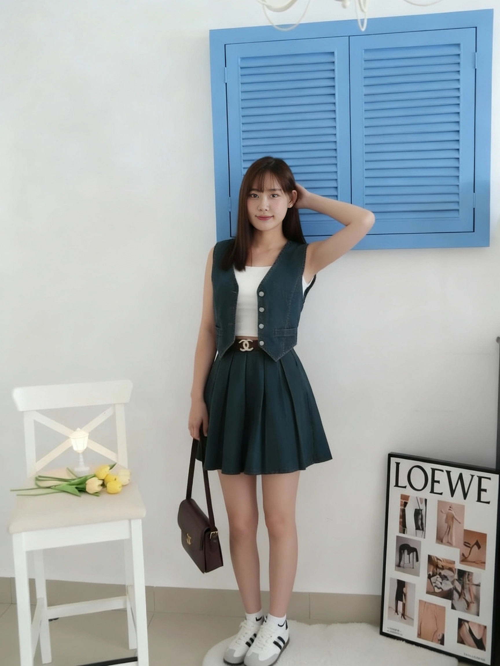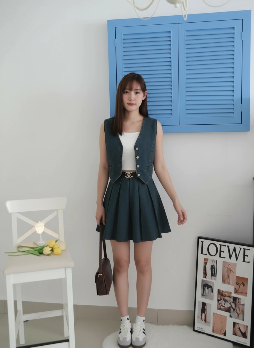 𝘛𝘩𝘪𝘴 𝘯𝘦𝘸 𝘥𝘦𝘯𝘪𝘮 𝘒𝘰𝘳𝘦𝘢𝘯 𝘷𝘦𝘴𝘵 𝘴𝘦𝘵 𝘰𝘧𝘧𝘦𝘳𝘴 𝘢 𝘷𝘪𝘯𝘵𝘢𝘨𝘦 𝘴𝘵𝘺𝘭𝘦 𝘸𝘪𝘵𝘩 𝘢 𝘶𝘯𝘪𝘲𝘶𝘦 𝘤𝘰𝘭𝘰𝘳. 𝘐𝘵’𝘴 𝘮𝘢𝘥𝘦 𝘧𝘳𝘰𝘮 𝘩𝘪𝘨𝘩-𝘲𝘶𝘢𝘭𝘪𝘵𝘺, 𝘴𝘵𝘳𝘦𝘵𝘤𝘩𝘢𝘣𝘭𝘦 𝘥𝘦𝘯𝘪𝘮 𝘧𝘢𝘣𝘳𝘪𝘤✨. 𝘛𝘩𝘦 𝘷𝘦𝘴𝘵 𝘤𝘢𝘯 𝘣𝘦 𝘸𝘰𝘳𝘯 𝘰𝘷𝘦𝘳 𝘢 𝘵𝘢𝘯𝘬 𝘵𝘰𝘱 𝘢𝘴 𝘰𝘶𝘵𝘦𝘳𝘸𝘦𝘢𝘳 𝘰𝘳 𝘣𝘶𝘵𝘵𝘰𝘯𝘦𝘥 𝘶𝘱 𝘢𝘯𝘥 𝘸𝘰𝘳𝘯 𝘢𝘴 𝘢 𝘵𝘰𝘱. 𝘐𝘵 𝘤𝘰𝘮𝘦𝘴 𝘸𝘪𝘵𝘩 𝘢 𝘤𝘰𝘮𝘱𝘭𝘪𝘮𝘦𝘯𝘵𝘢𝘳𝘺 𝘷𝘪𝘯𝘵𝘢𝘨𝘦-𝘴𝘵𝘺𝘭𝘦 👜 𝘣𝘳𝘰𝘸𝘯 𝘊𝘩𝘢𝘯𝘦𝘭-𝘪𝘯𝘴𝘱𝘪𝘳𝘦𝘥 𝘣𝘦𝘭𝘵. 𝘛𝘩𝘦 𝘮𝘢𝘵𝘦𝘳𝘪𝘢𝘭 𝘪𝘴 𝘴𝘰𝘧𝘵 𝘢𝘯𝘥 𝘤𝘰𝘮𝘧𝘰𝘳𝘵𝘢𝘣𝘭𝘦, 𝘮𝘢𝘬𝘪𝘯𝘨 𝘪𝘵 𝘱𝘦𝘳𝘧𝘦𝘤𝘵 𝘧𝘰𝘳 𝘸𝘦𝘢𝘳𝘪𝘯𝘨 𝘢𝘭𝘭 𝘥𝘢𝘺 𝘢𝘵 𝘢𝘯𝘺 𝘰𝘤𝘤𝘢𝘴𝘪𝘰𝘯 🤍.
