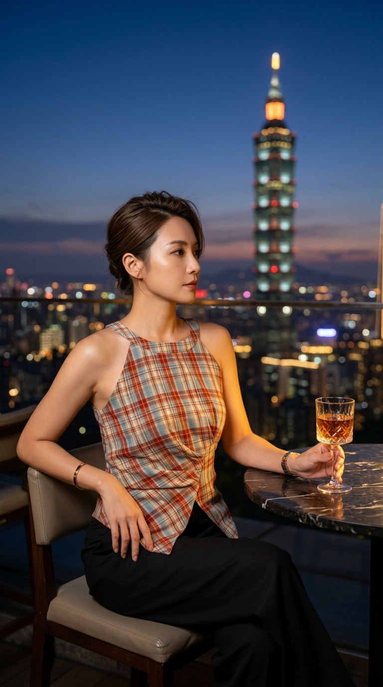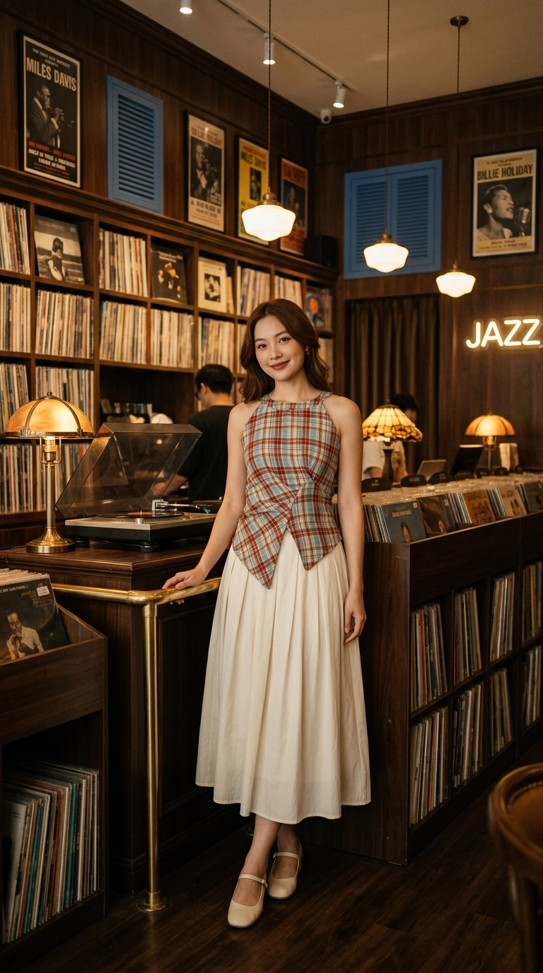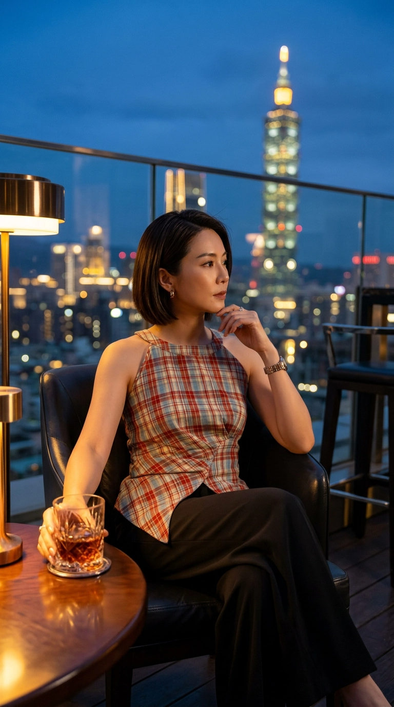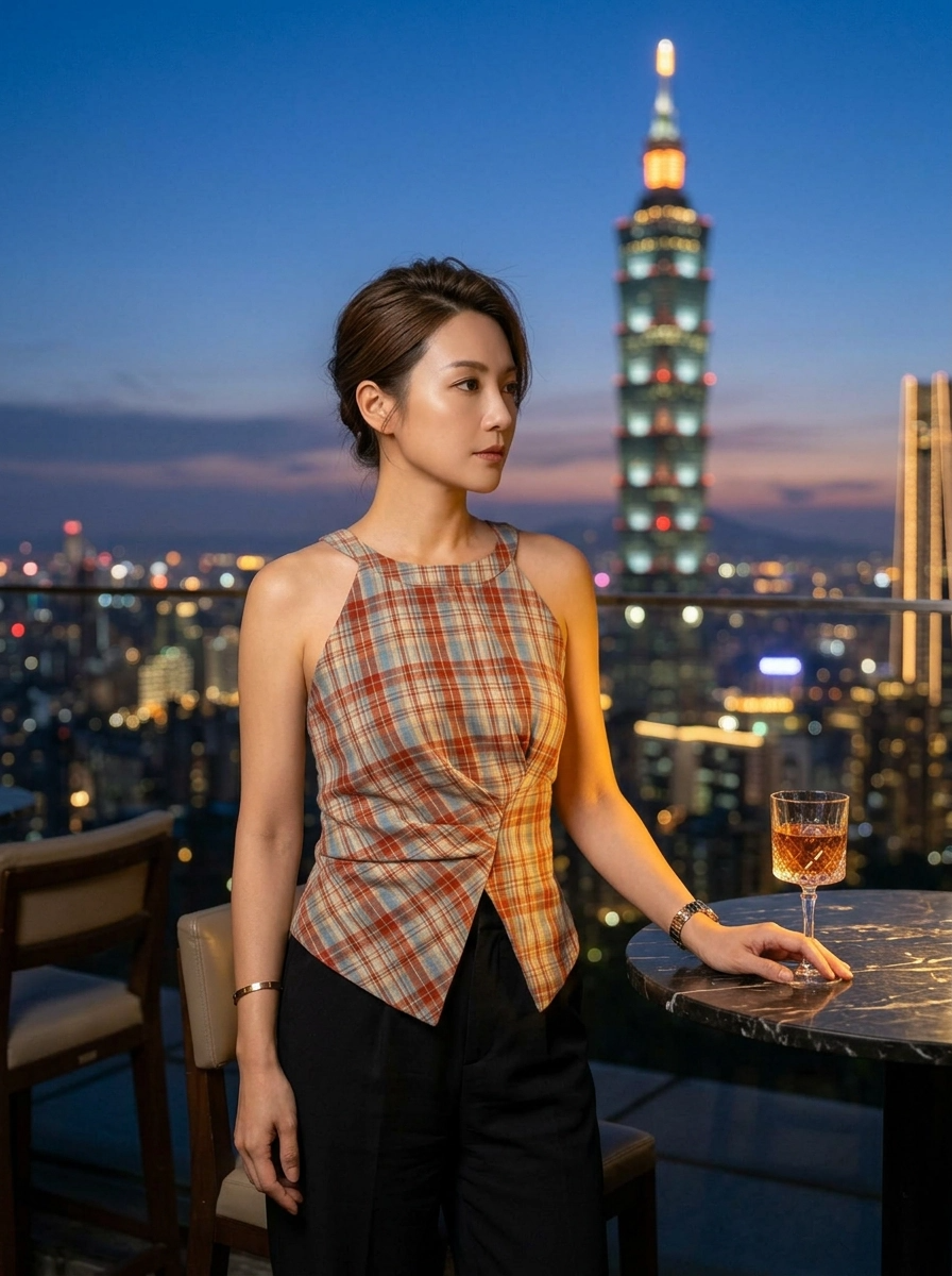 Retro Halter Neck Plaid Slim Fit Top