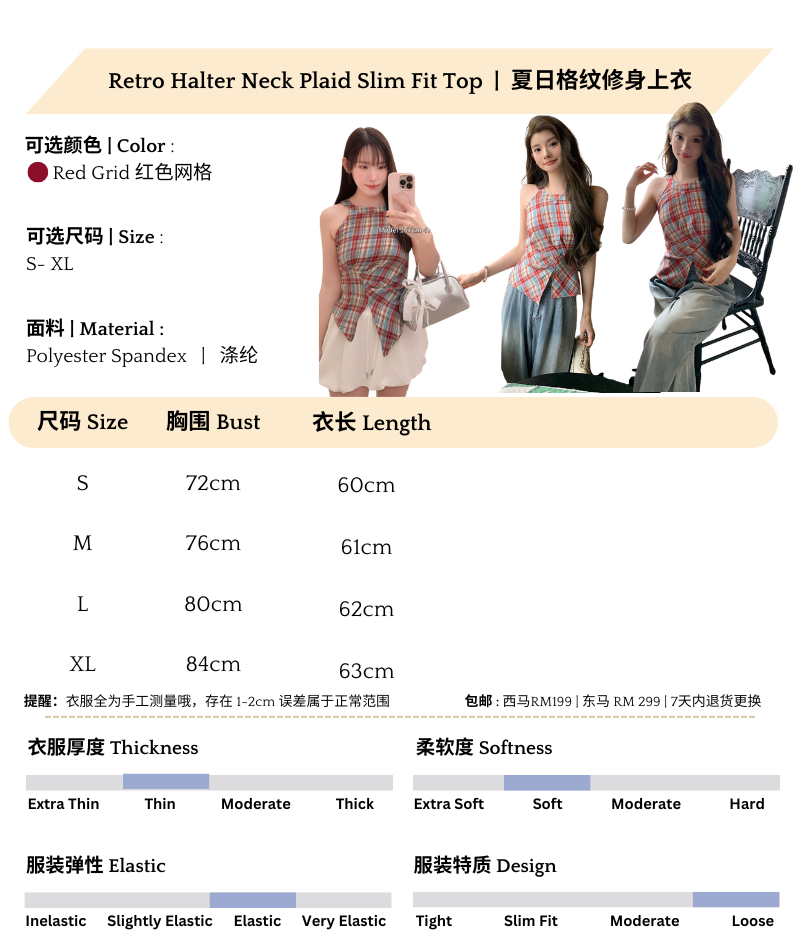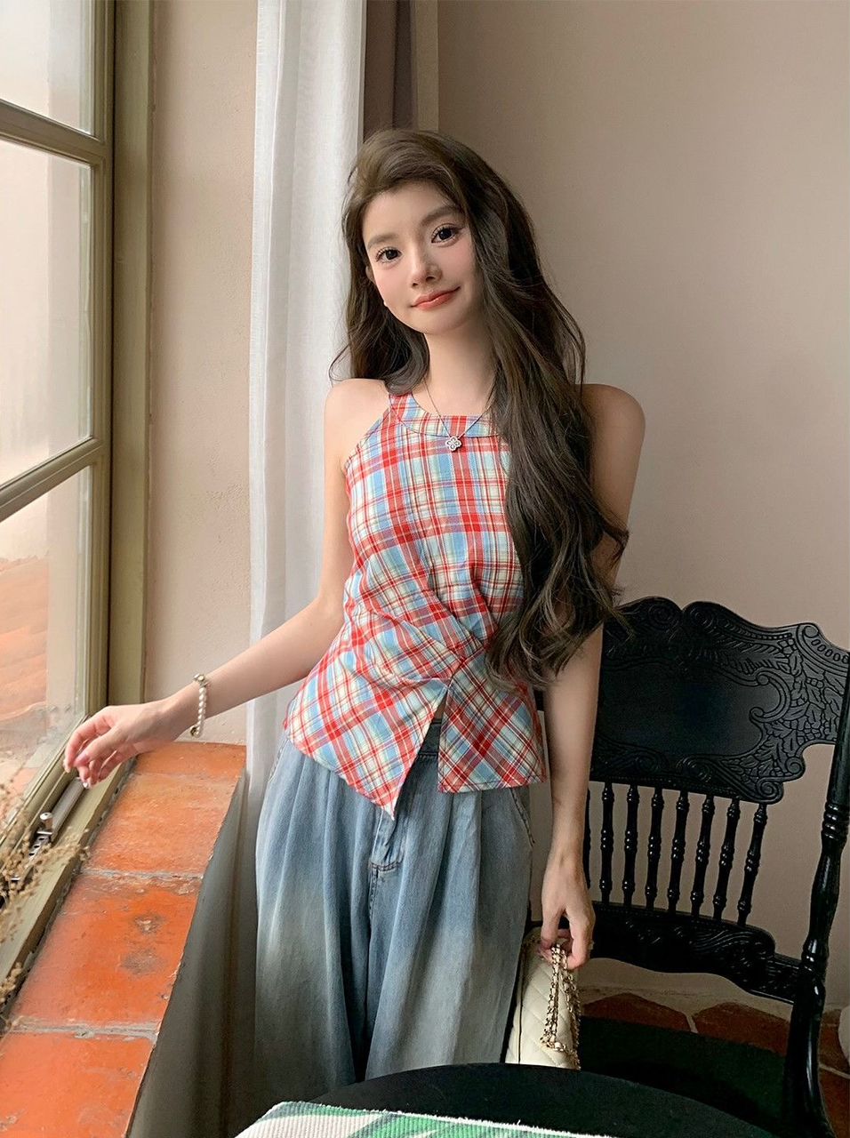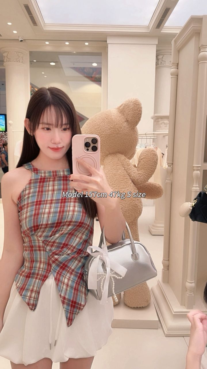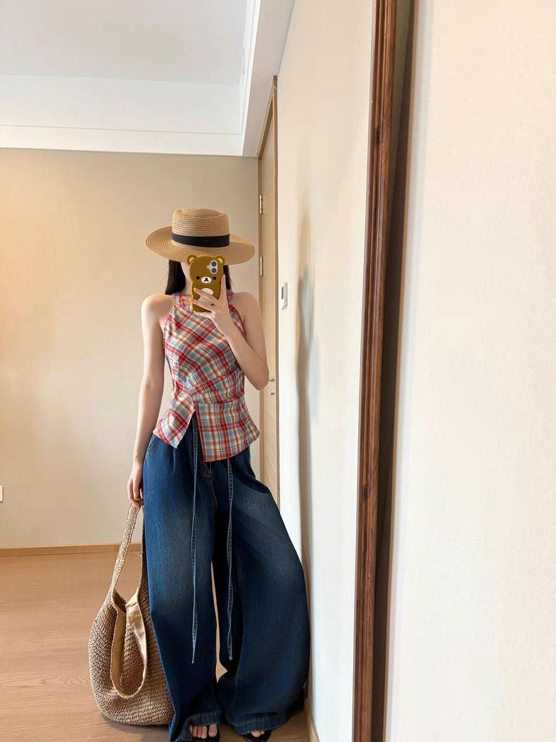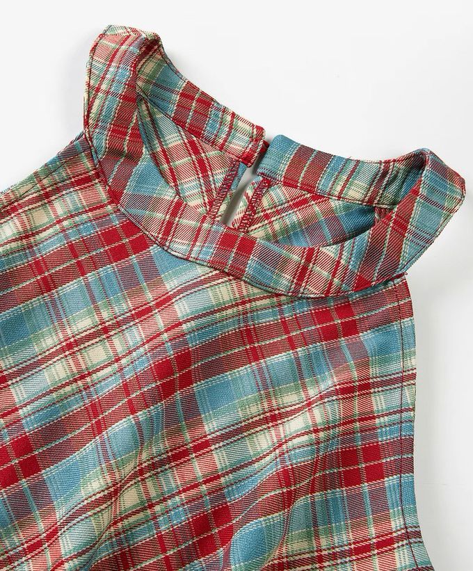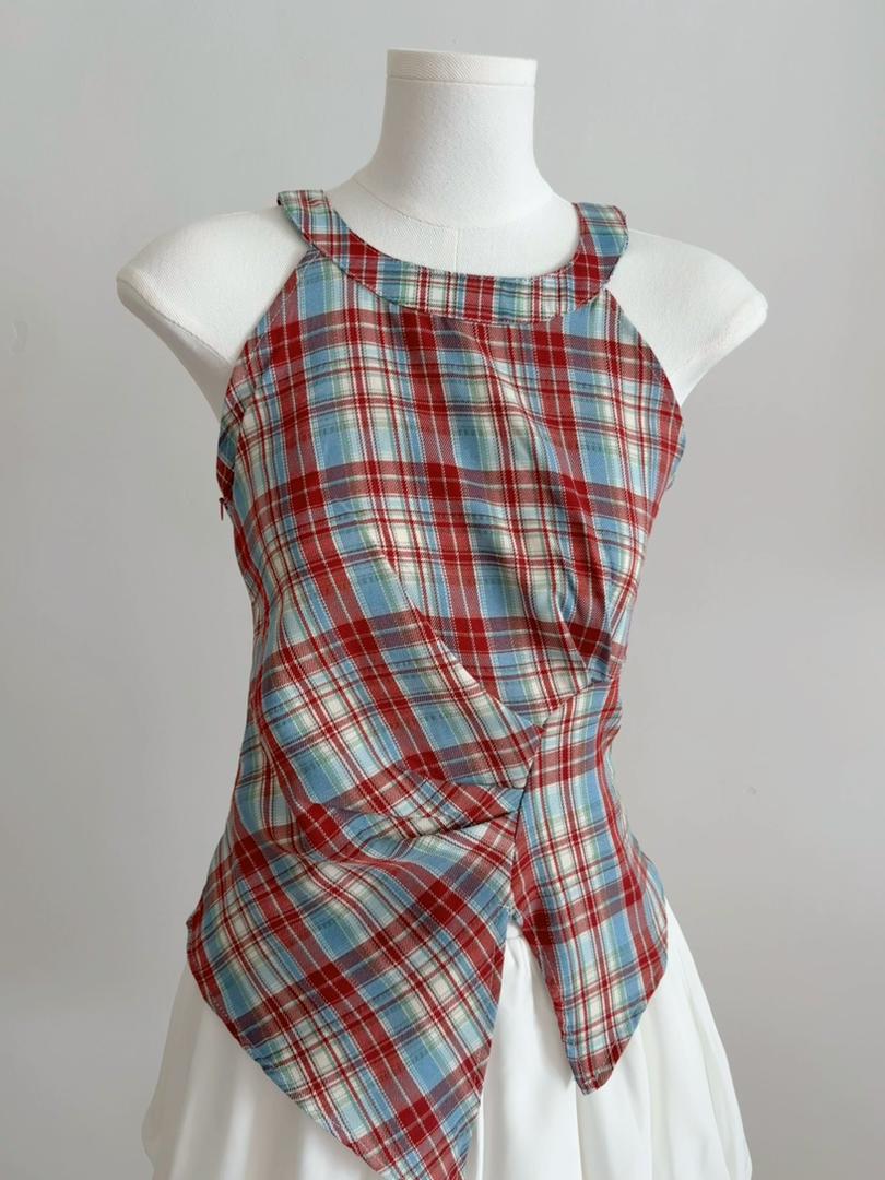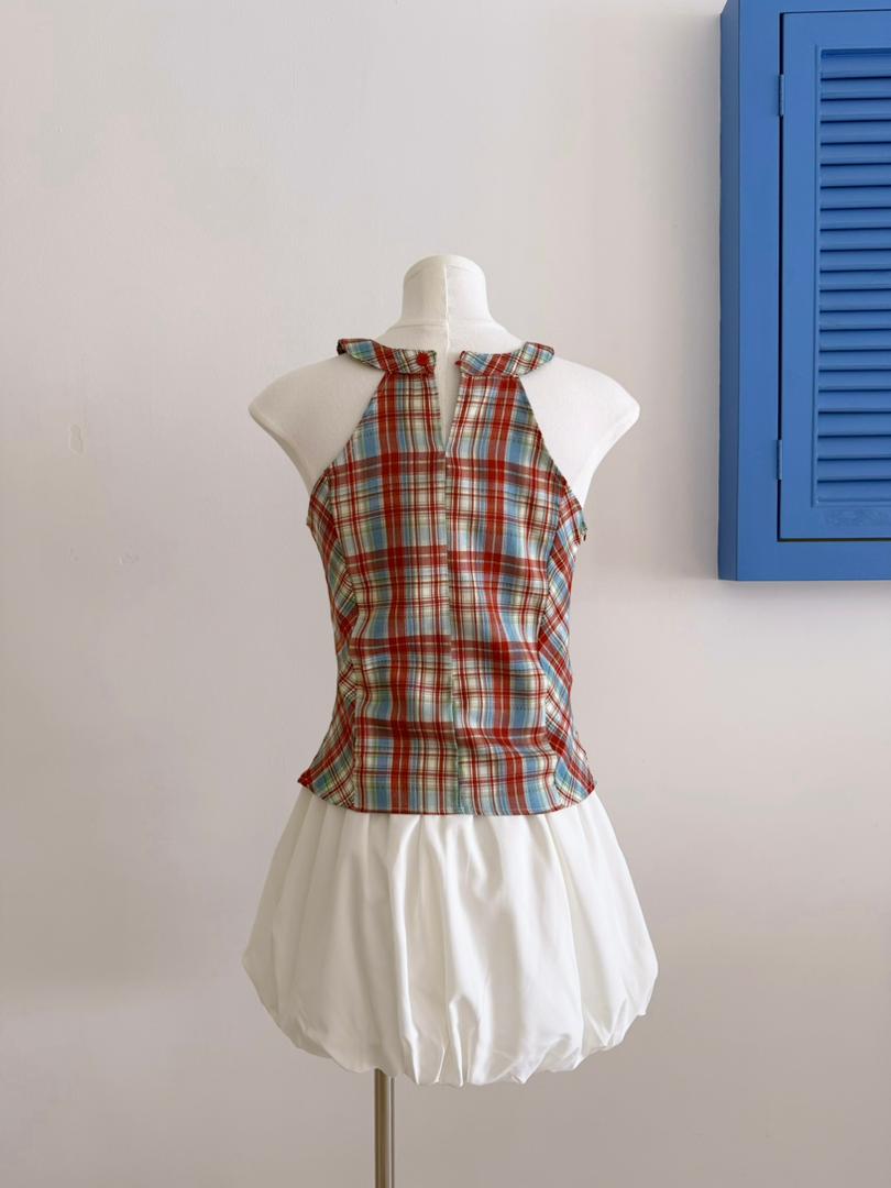 Retro Halter Neck Plaid Slim Fit Top quantity