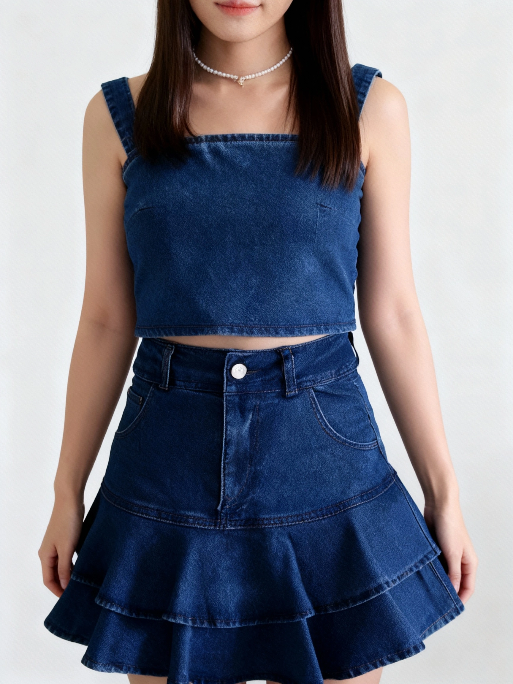 𝘛𝘩𝘪𝘴 𝘯𝘦𝘸 𝘴𝘶𝘮𝘮𝘦𝘳 𝘵𝘳𝘦𝘯𝘥𝘺 𝘴𝘱𝘢𝘨𝘩𝘦𝘵𝘵𝘪 𝘴𝘵𝘳𝘢𝘱 𝘥𝘦𝘯𝘪𝘮 𝘴𝘦𝘵 𝘧𝘦𝘢𝘵𝘶𝘳𝘦𝘴 𝘢 𝘤𝘩𝘪𝘤 𝘢𝘯𝘥 𝘥𝘪𝘴𝘵𝘪𝘯𝘤𝘵𝘪𝘷𝘦 𝘴𝘵𝘺𝘭𝘦✨. 𝘛𝘩𝘦 𝘸𝘢𝘷𝘺 𝘴𝘬𝘪𝘳𝘵 𝘥𝘦𝘴𝘪𝘨𝘯 𝘦𝘭𝘰𝘯𝘨𝘢𝘵𝘦𝘴 𝘺𝘰𝘶𝘳 𝘭𝘦𝘨𝘴, 𝘨𝘪𝘷𝘪𝘯𝘨 𝘢 𝘴𝘭𝘪𝘮 𝘢𝘯𝘥 𝘦𝘭𝘦𝘨𝘢𝘯𝘵 𝘭𝘰𝘰𝘬. 𝘛𝘩𝘦 𝘴𝘬𝘪𝘳𝘵 𝘤𝘢𝘯 𝘢𝘭𝘴𝘰 𝘣𝘦 𝘱𝘢𝘪𝘳𝘦𝘥 𝘸𝘪𝘵𝘩 𝘢 𝘤𝘢𝘴𝘶𝘢𝘭 𝘵𝘦𝘦 𝘧𝘰𝘳 𝘢 𝘥𝘪𝘧𝘧𝘦𝘳𝘦𝘯𝘵 𝘴𝘵𝘺𝘭𝘦. 😎𝘛𝘩𝘦 𝘥𝘦𝘯𝘪𝘮 𝘧𝘢𝘣𝘳𝘪𝘤 𝘪𝘴 𝘴𝘰𝘧𝘵 𝘢𝘯𝘥 𝘣𝘳𝘦𝘢𝘵𝘩𝘢𝘣𝘭𝘦, 𝘱𝘦𝘳𝘧𝘦𝘤𝘵 𝘧𝘰𝘳 𝘸𝘢𝘳𝘮 𝘸𝘦𝘢𝘵𝘩𝘦𝘳☀️. 𝘋𝘰𝘯’𝘵 𝘮𝘪𝘴𝘴 𝘰𝘶𝘵—𝘭𝘪𝘮𝘪𝘵𝘦𝘥 𝘴𝘵𝘰𝘤𝘬 𝘢𝘷𝘢𝘪𝘭𝘢𝘣𝘭𝘦!