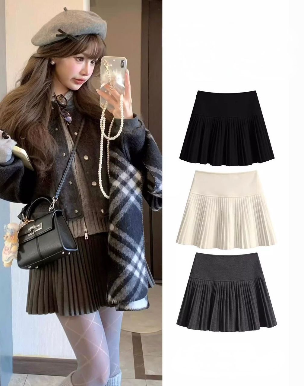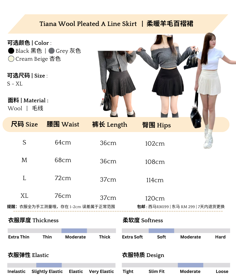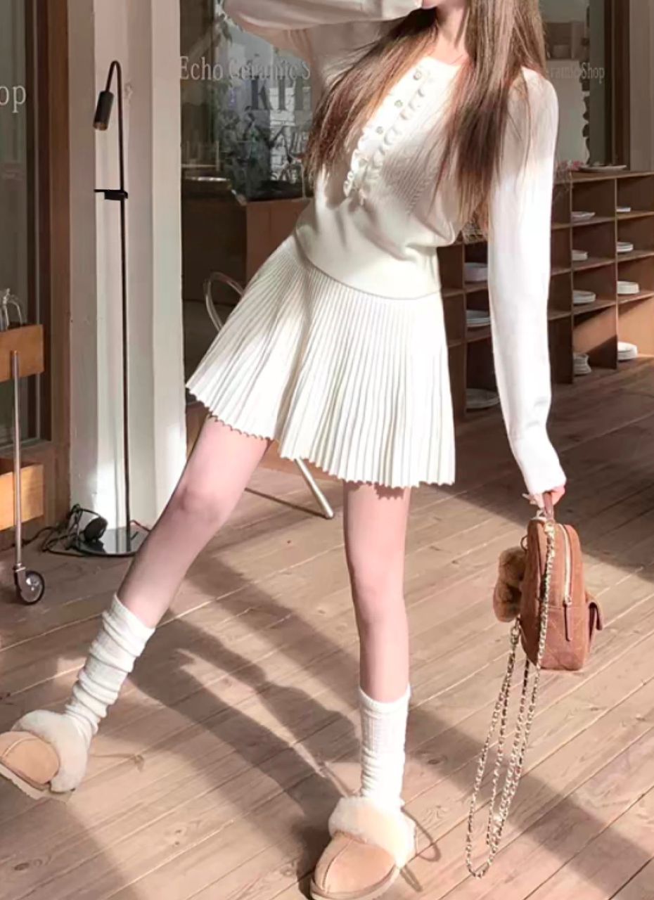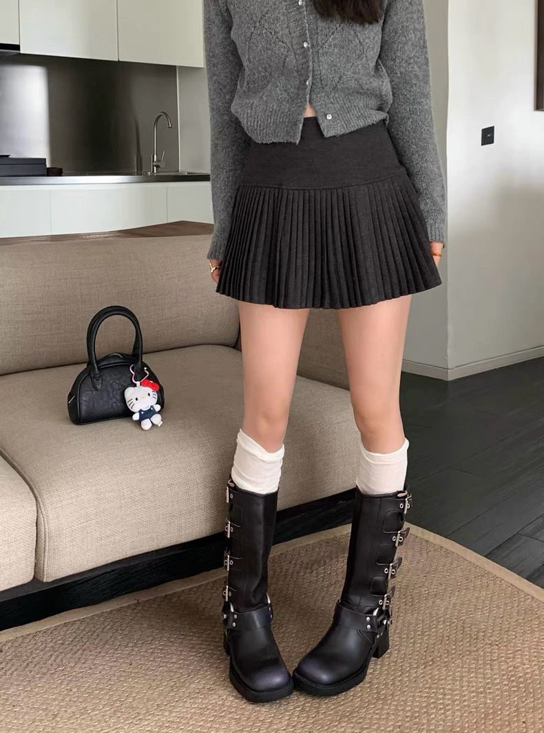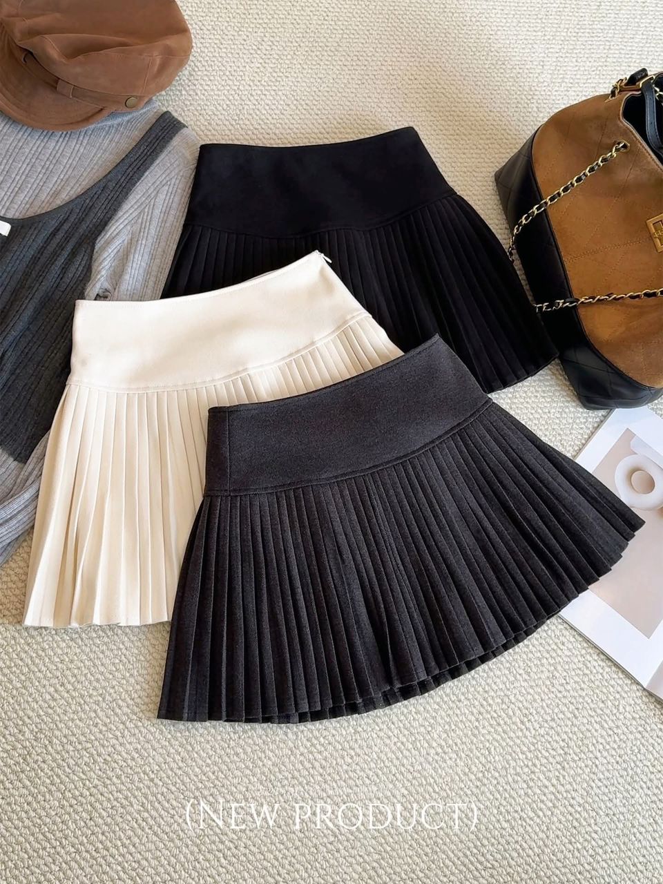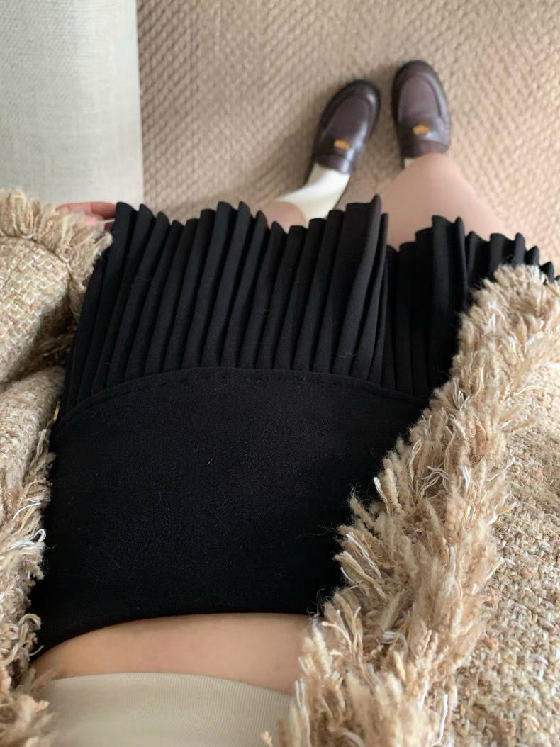 Korean-style pleated skirt that never goes out of style. High waist, soft wool fabric, and a flattering A-line cut easy to match with knits, cardigans, or simple tees ✨From casual days to formal outings, this skirt does it all.
