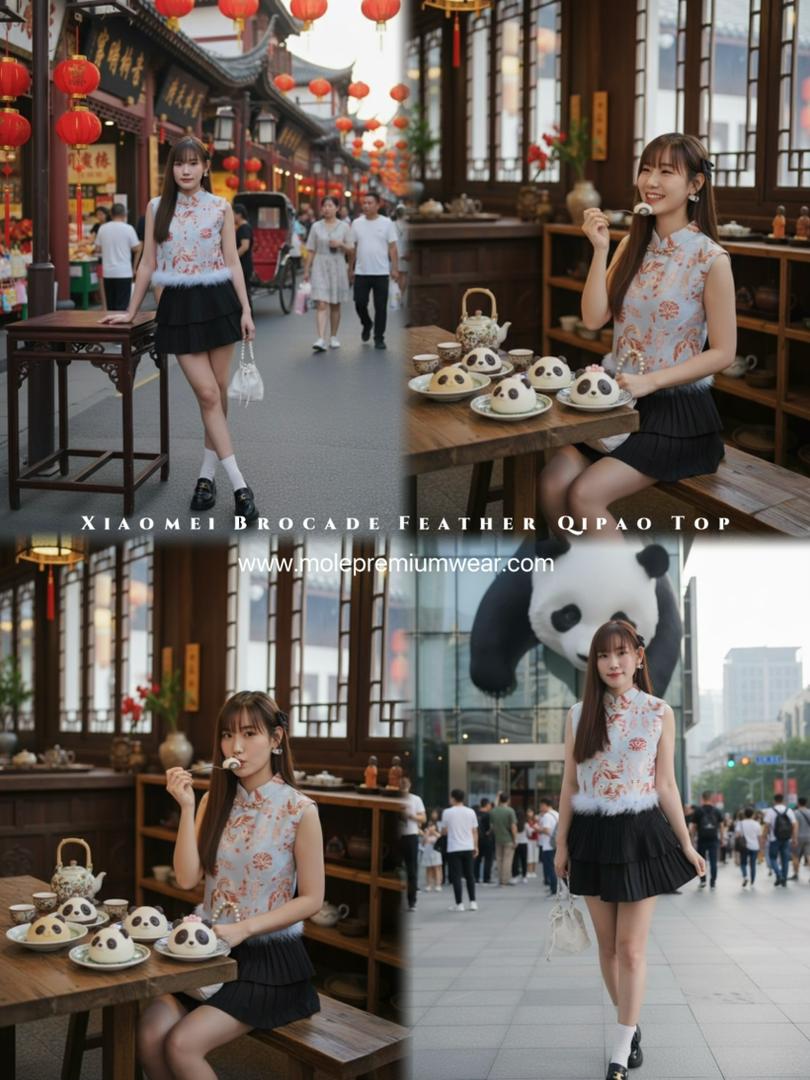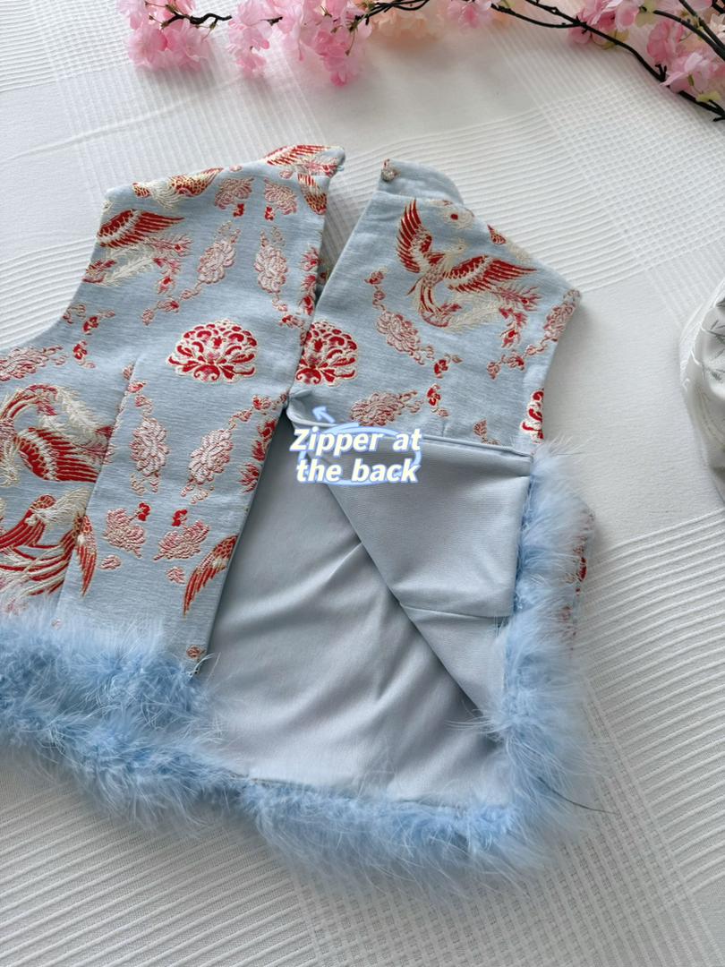 🪭🎐𝑿𝒊𝒂𝒐𝒎𝒆𝒊 𝑩𝒓𝒐𝒄𝒂𝒅𝒆 𝑭𝒆𝒂𝒕𝒉𝒆𝒓 𝑸𝒊𝒑𝒂𝒐 𝑻𝒐𝒑 𝘪𝘴 𝘮𝘢𝘥𝘦 𝘧𝘳𝘰𝘮 𝘱𝘳𝘦𝘮𝘪𝘶𝘮 𝘴𝘰𝘧𝘵 𝘣𝘳𝘰𝘤𝘢𝘥𝘦 𝘸𝘪𝘵𝘩 𝘢 𝘧𝘦𝘮𝘪𝘯𝘪𝘯𝘦 𝘣𝘢𝘣𝘺-𝘣𝘭𝘶𝘦 𝘧𝘦𝘢𝘵𝘩𝘦𝘳 𝘵𝘳𝘪𝘮 𝘧𝘰𝘳 𝘢 𝘸𝘪𝘯𝘵𝘦𝘳–𝘴𝘱𝘳𝘪𝘯𝘨 𝘧𝘦𝘴𝘵𝘪𝘷𝘦 𝘭𝘰𝘰𝘬. ❄️🌸