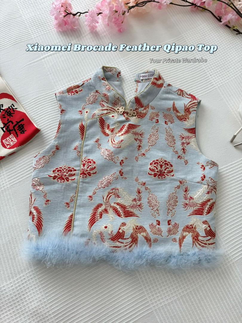 🪭🎐𝑿𝒊𝒂𝒐𝒎𝒆𝒊 𝑩𝒓𝒐𝒄𝒂𝒅𝒆 𝑭𝒆𝒂𝒕𝒉𝒆𝒓 𝑸𝒊𝒑𝒂𝒐 𝑻𝒐𝒑 𝘪𝘴 𝘮𝘢𝘥𝘦 𝘧𝘳𝘰𝘮 𝘱𝘳𝘦𝘮𝘪𝘶𝘮 𝘴𝘰𝘧𝘵 𝘣𝘳𝘰𝘤𝘢𝘥𝘦 𝘸𝘪𝘵𝘩 𝘢 𝘧𝘦𝘮𝘪𝘯𝘪𝘯𝘦 𝘣𝘢𝘣𝘺-𝘣𝘭𝘶𝘦 𝘧𝘦𝘢𝘵𝘩𝘦𝘳 𝘵𝘳𝘪𝘮 𝘧𝘰𝘳 𝘢 𝘸𝘪𝘯𝘵𝘦𝘳–𝘴𝘱𝘳𝘪𝘯𝘨 𝘧𝘦𝘴𝘵𝘪𝘷𝘦 𝘭𝘰𝘰𝘬. ❄️🌸